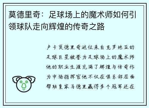 卢卡·莫德里奇,这位来自克罗地亚的足球巨星,被誉为“足球场上的魔术师”。他的职业生涯充满了辉煌与传奇,作为中场指挥官,他不仅在俱乐部层面帮助皇家马德里赢得多个冠军,还在国家队中引领克罗地亚取得历史性的成就。本文将从四个方面详细探讨莫德里奇的影响力:他的技术天赋、战术智慧、领导能力以及对球队文化的塑造。通过这些方面,我们将更深入地理解这位球员如何在赛场上发挥关键作用,并带领球队走向辉煌的传奇之路。